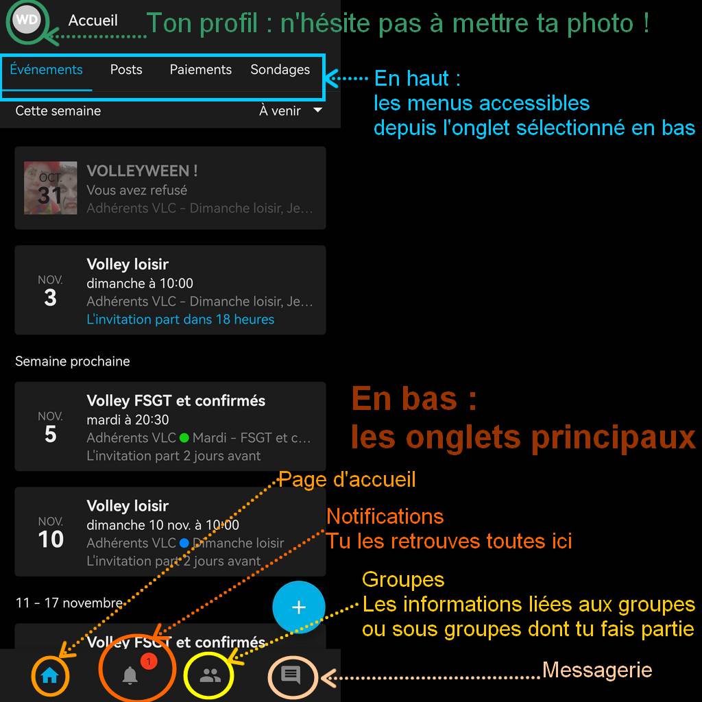 Entre autres, tu pourras : ajouter/modifier ta photo, voir l’historique de tes paiements, régler les notifications que tu souhaites recevoir ou pas, synchroniser les séances volley sur ton agenda électronique, etc...